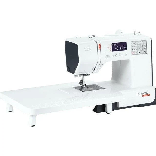The bernette b38 is the top model in the b30 series. This computerized sewing machine offers a wide range of functions at an affordable price ā leaving nothing to be desired. It offers 394 different stitches, including the stretch stitch for elastic fabrics. This means you can create fantastic T-shirts from jersey fabric, for example. The b38 also has eight different 1-step buttonholes and three alphabets. In addition, it has a memory function, via which you can store various combinations of patterns and access them again at a later date. The b38 has a useful speed regulator, which can be adjusted on the display. As the top model, this impressive sewing machine also has a bright LED sewing light, a threader and both an automatic and a manual thread cutter.